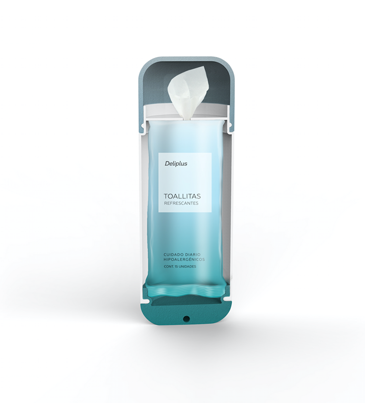 deliplus個人護理。一種便攜式濕紙巾的結構和圖形設計。